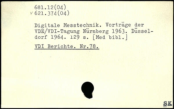 Digitale Messtechnik. Vorträge der VDE/VDI-Tagung Nürnberg 1963. Düsseldorf 1964.