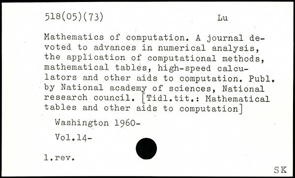 Mathematics of computation. A journal devoted to advances in numerical analysis, the application of computational methods, mathematical tables, high-speed calculators and other aids to computation.
