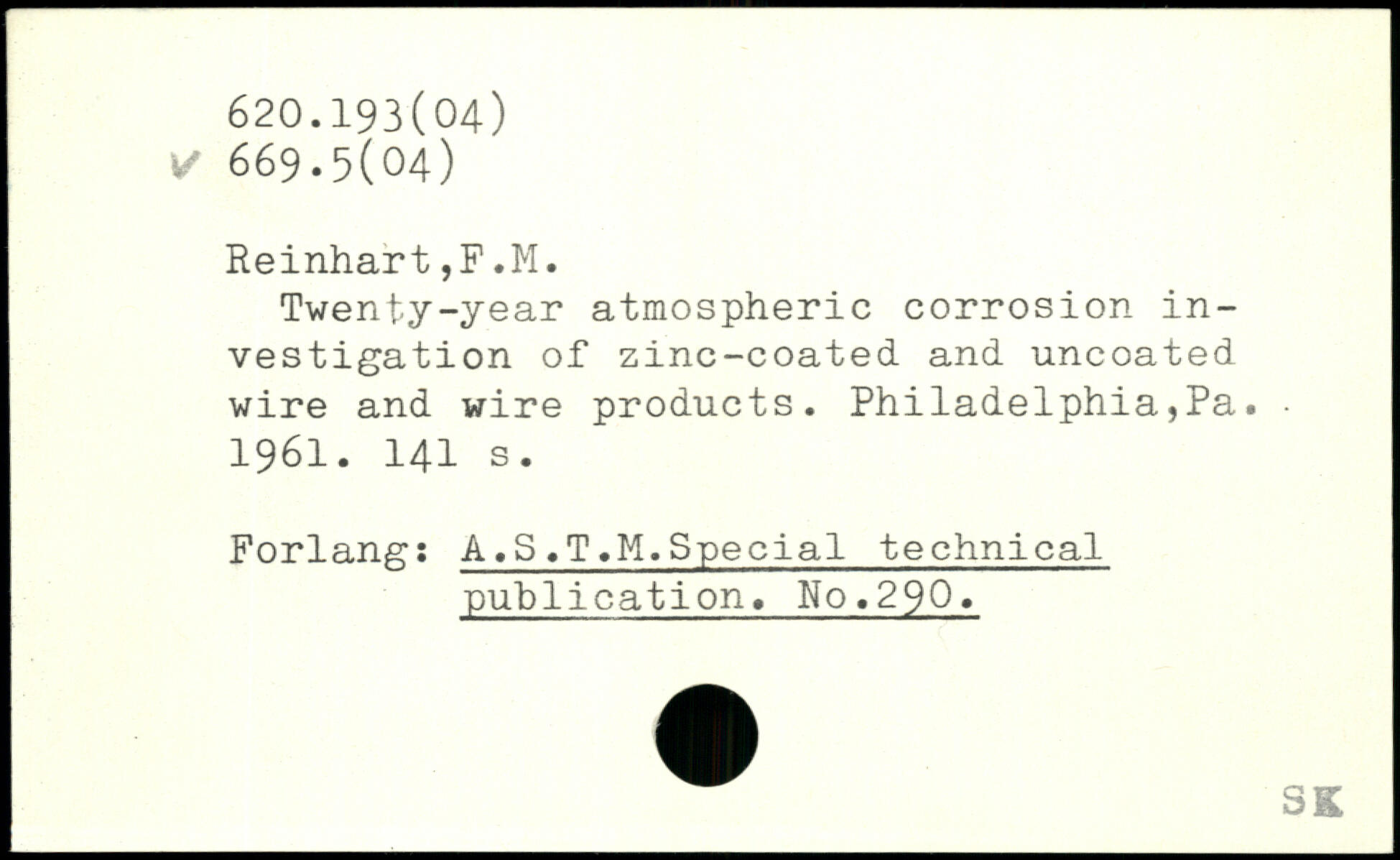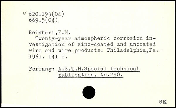 Twenty-year atmospheric corrosion investigation of zinc-coated and uncoated wire and wire products. Philadelphia,Pa. ■ 1961.