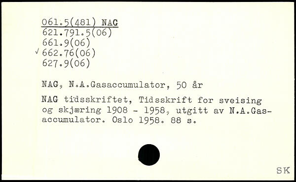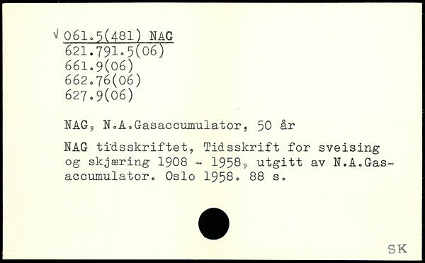 NAG, N.A.Gasaccumulator, 50 år NAG tidsskriftet, Tidsskrift for sveising og skjaering 1908 - 1958? utgitt av N.A.Gas-accumulator. Oslo 1958®