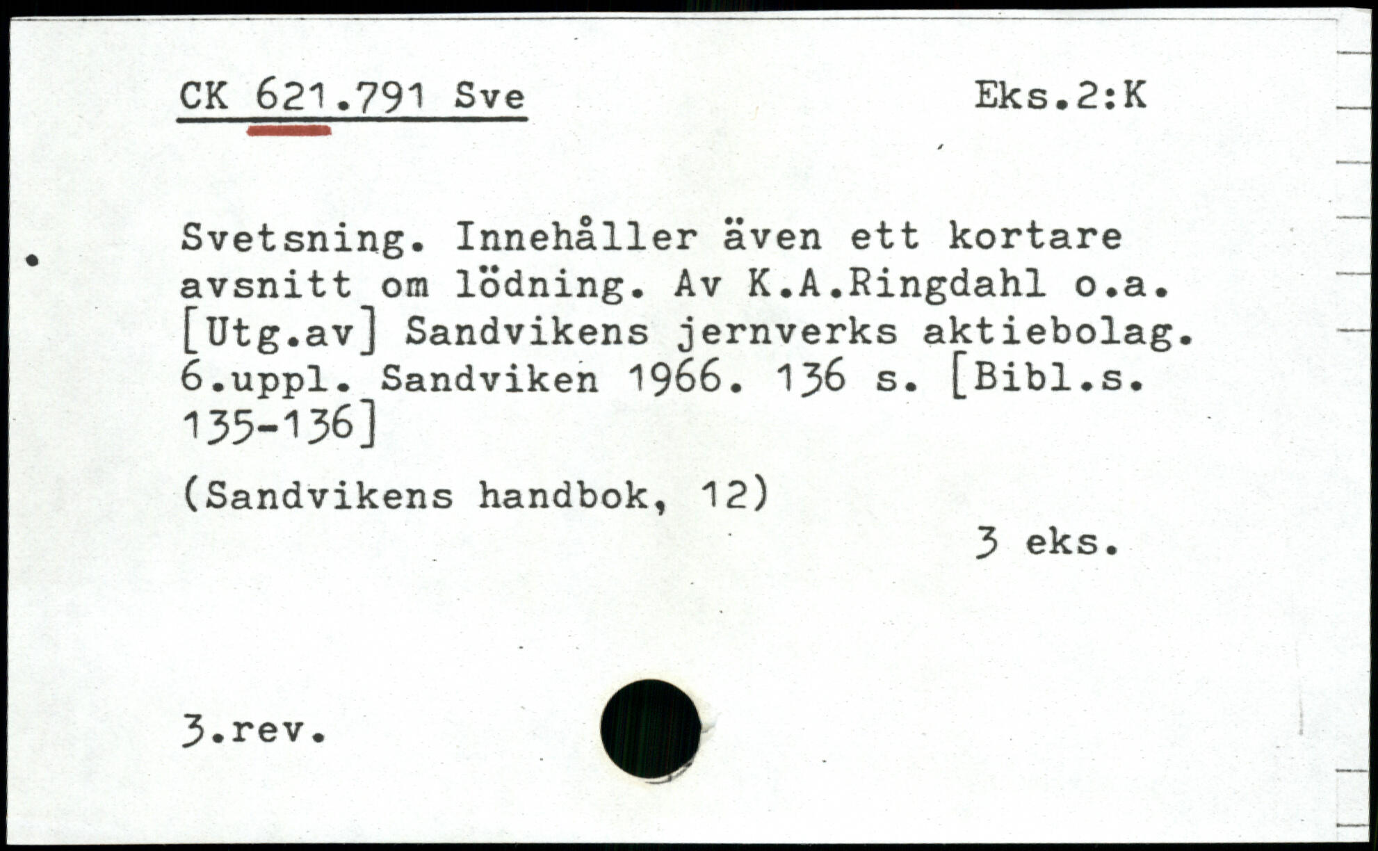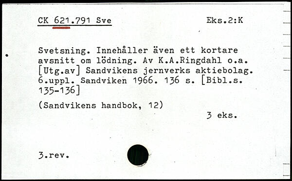 Svetsning. Innehåller även ett kortare avsnitt om lödning. Av K.A.Ringdahl o.a.