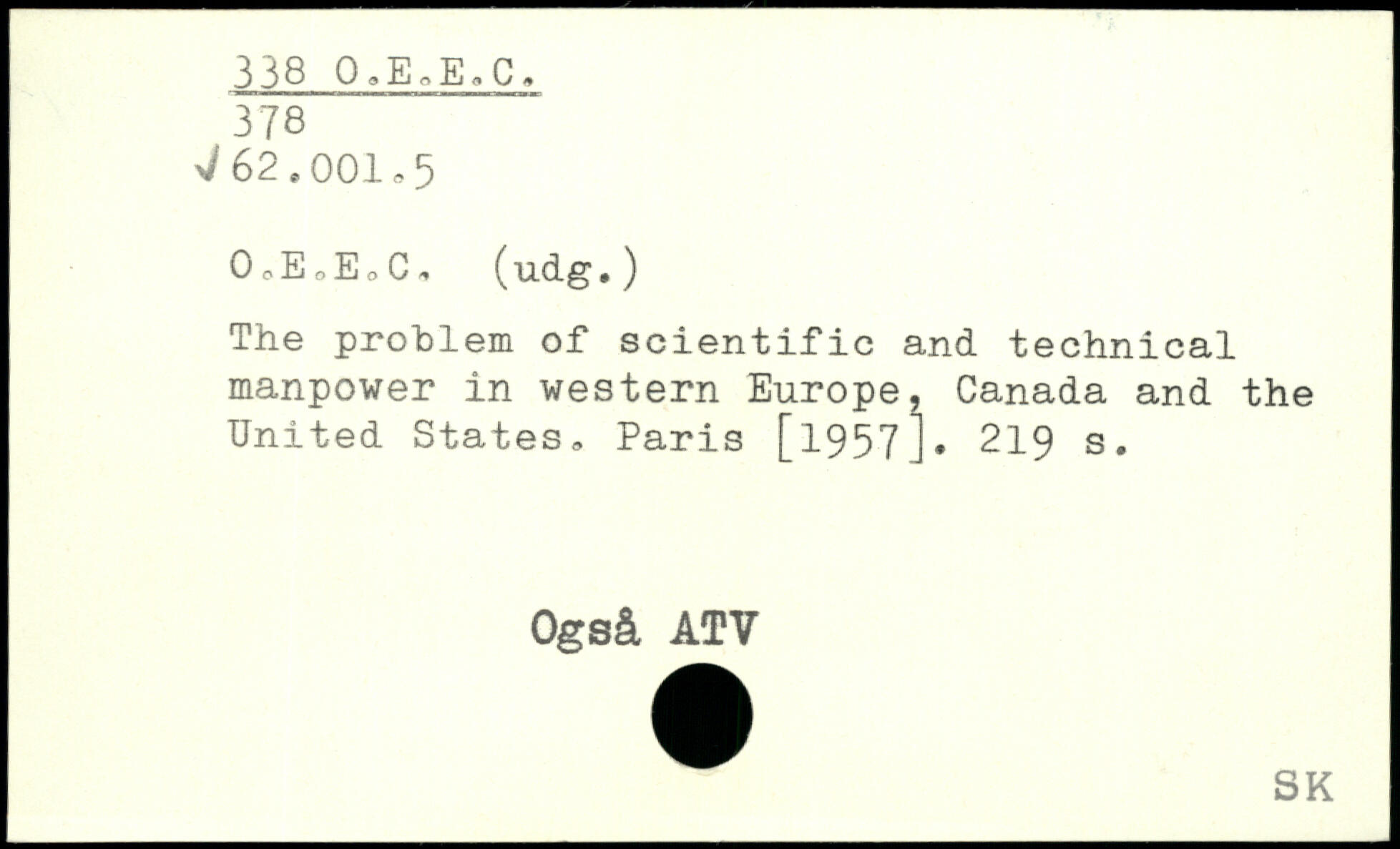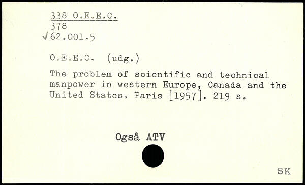 The prohlem of scientific and technical manpower in western Europe, Canada and the United States