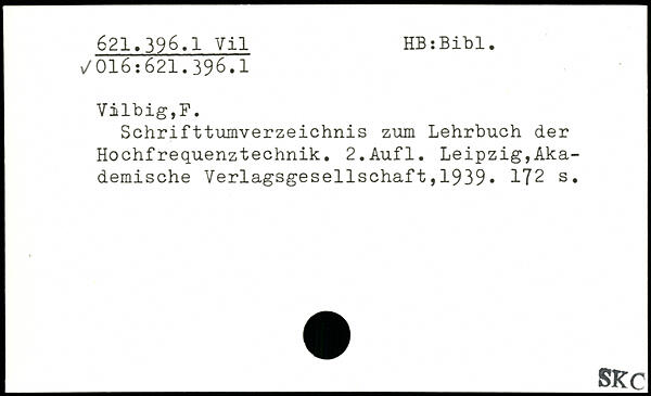 Schrifttumverzeichnis zum Lehrbuch der Hochfrequenztechnik.