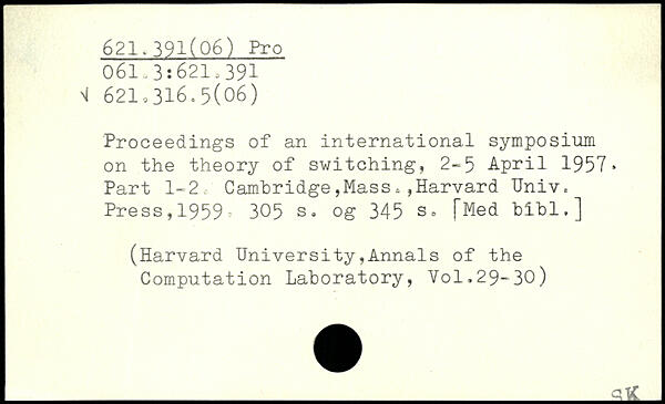 Proceedings of an international symposium on the theory of switching, 2-5 April 1957. Part 1-2, Cambridge,Mass. ,Harvard Univ. Press,1959