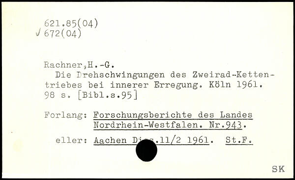 Rachner jH.-G. Die Drehschwingungen des Zweirad-Kettentriebes bei innerer Erregung.
