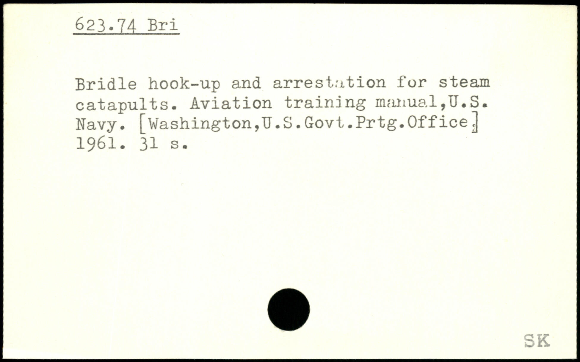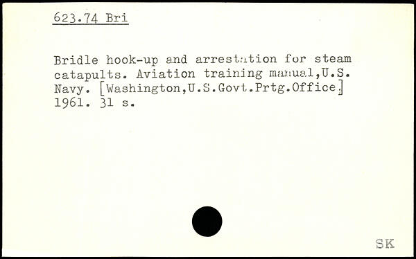 Bridle hook-up and arrestation for steam catapults. Aviation training manual,U.S. Navy. [Washington,U.S.Govt.Prtg.Office] 1961.