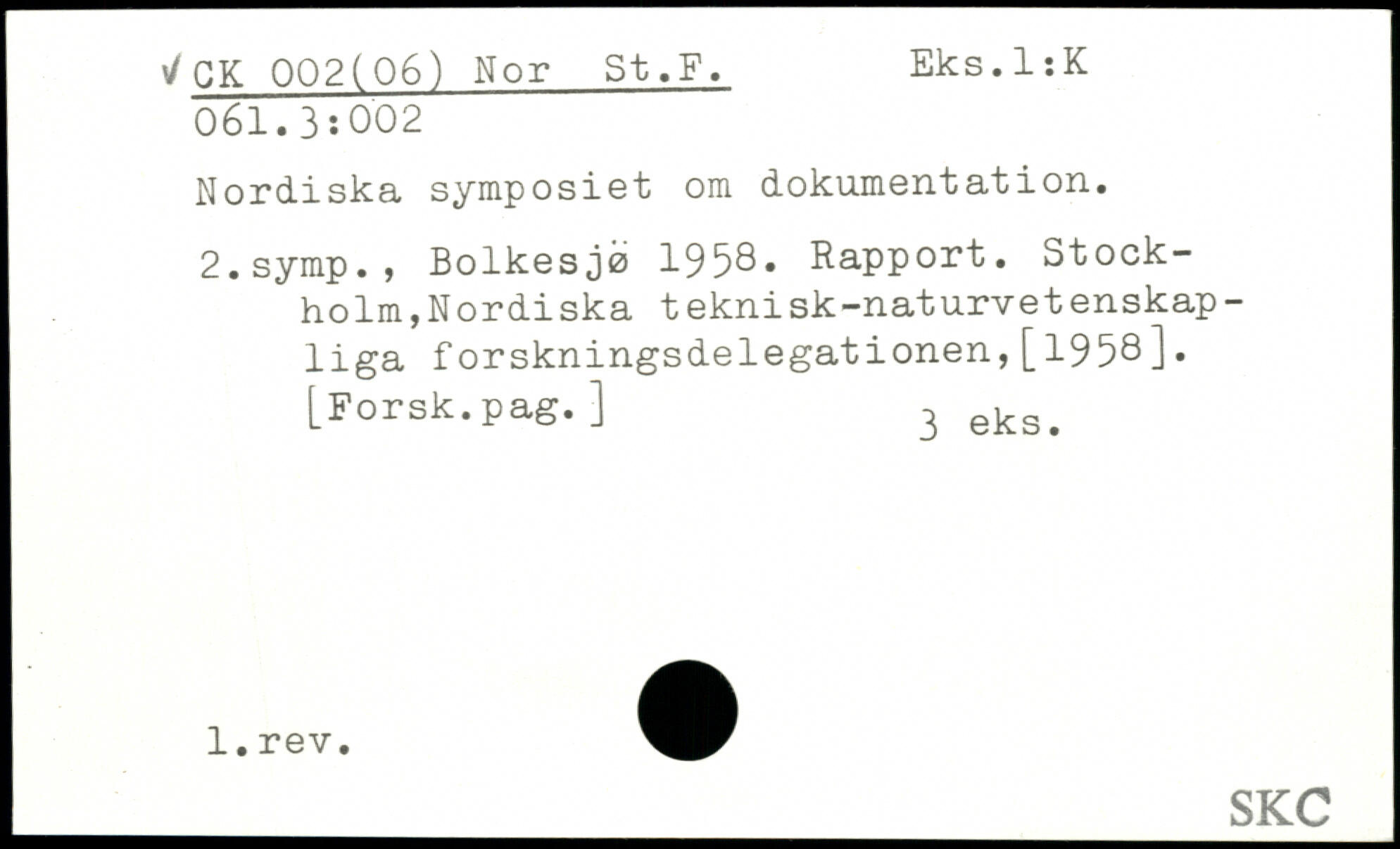 Nordiska symposiet om dokumentation. 2.symp., Bolkesjo 1958. Rapport.