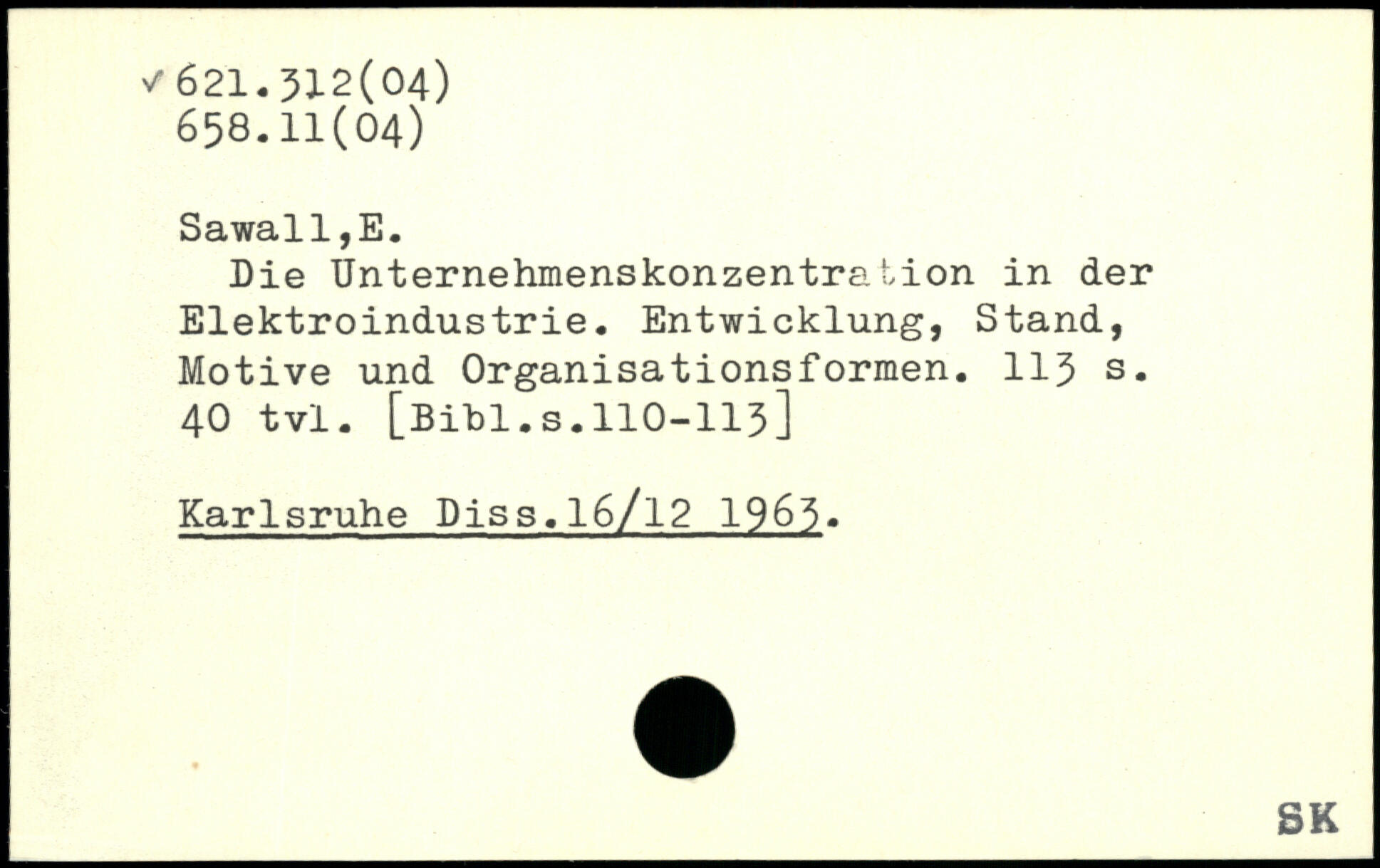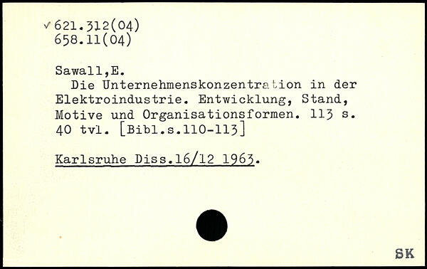 Die Unternehmenskonzentration in der Elektroindustrie. Entwicklung, Stand, Motive und Organisationsformen.