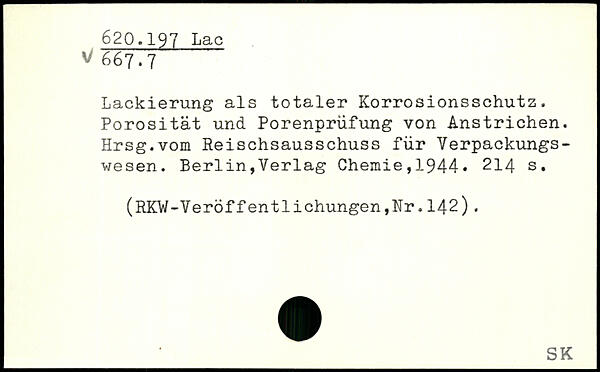 Lackierung als totaler Korrosionsschutz. Porosität und Porenprüfung von Anstrichen. Hrsg.vom Reischsausschuss für Verpackungswesen.