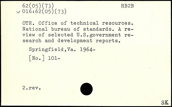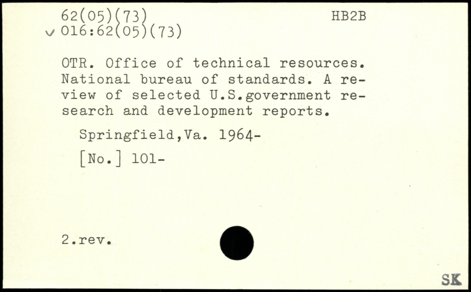 OTR. Office of technical resources. National bureau of standards. A review of selected U.S.government research and development reports. Springfield,Va. 1964- [No.] 101-