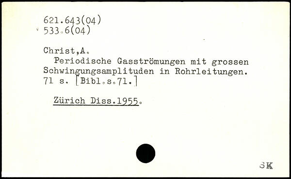Periodische Gasströmungen mit grossen Schwingungsamplituden in Rohrleitungen.