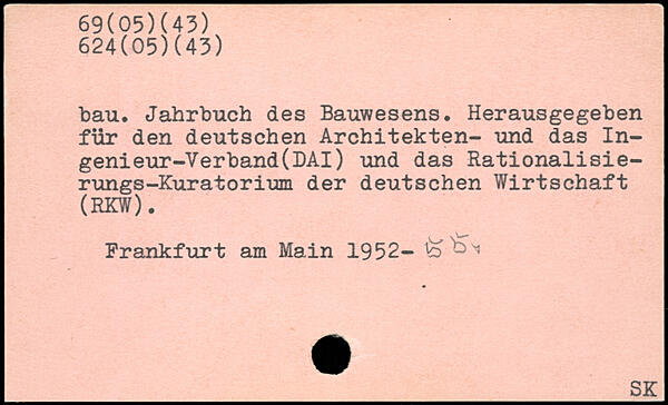 bau, Jahrbuch des Bauwesens, Herausgegeben für den deutschen Architekten- und das Ingenieur-Verband (DAI) und das Rationalisierungs-Kuratorium der deutschen Wirtschaft (BZW).