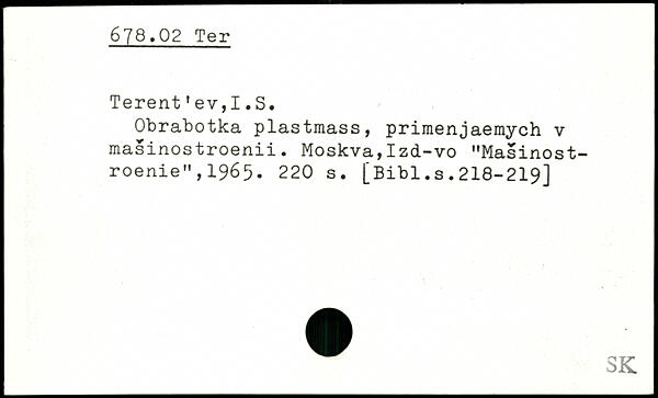 Obrabotka plastmass, primenjaemych v masinostroenii. Moskva,Izd-vo "Masinost-roenie",1965.