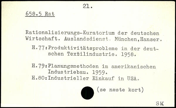 Rationalisierungs-Kuratorium der deutschen Wirtschaft. Auslandsdienst München,Hanser. H,77:Produktivitätsprobleme in der deutschen Textilindustrie. 1958. H.79:Planungsmethoden im amerikanischen Industriebau, 1959, H.80:Industrieller Einkauf in USA.