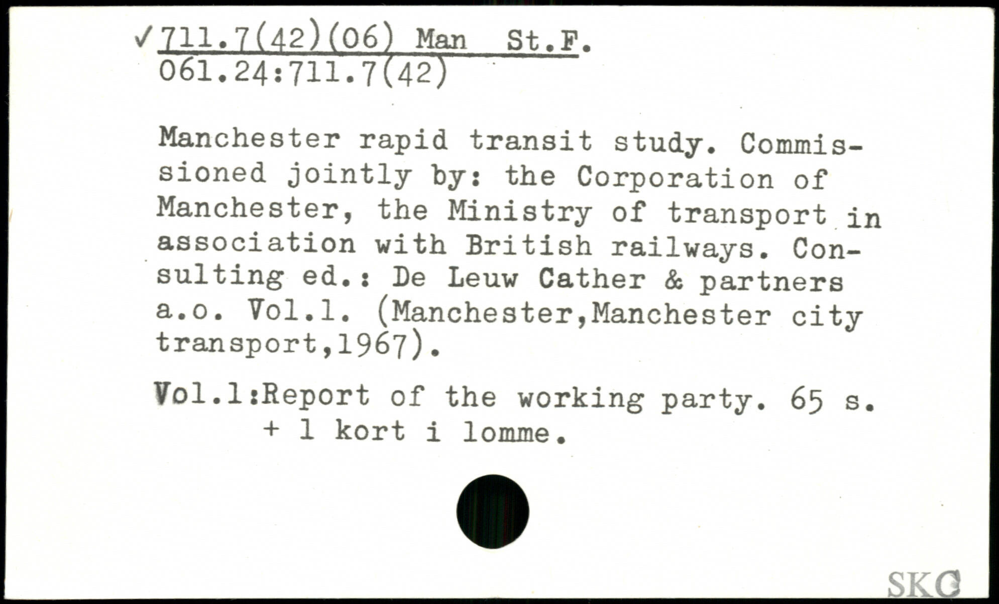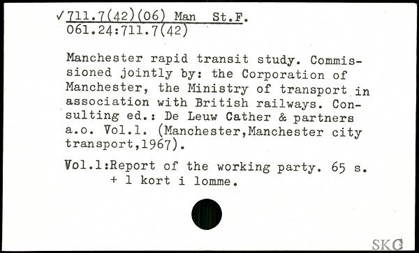 Manchester rapid transit study. Commissioned jointly by: the Corporation of Manchester, the Ministry of transport in association with British railways. Consulting ed.: Be Leuw Cather & partners a.o. Yol.l. (