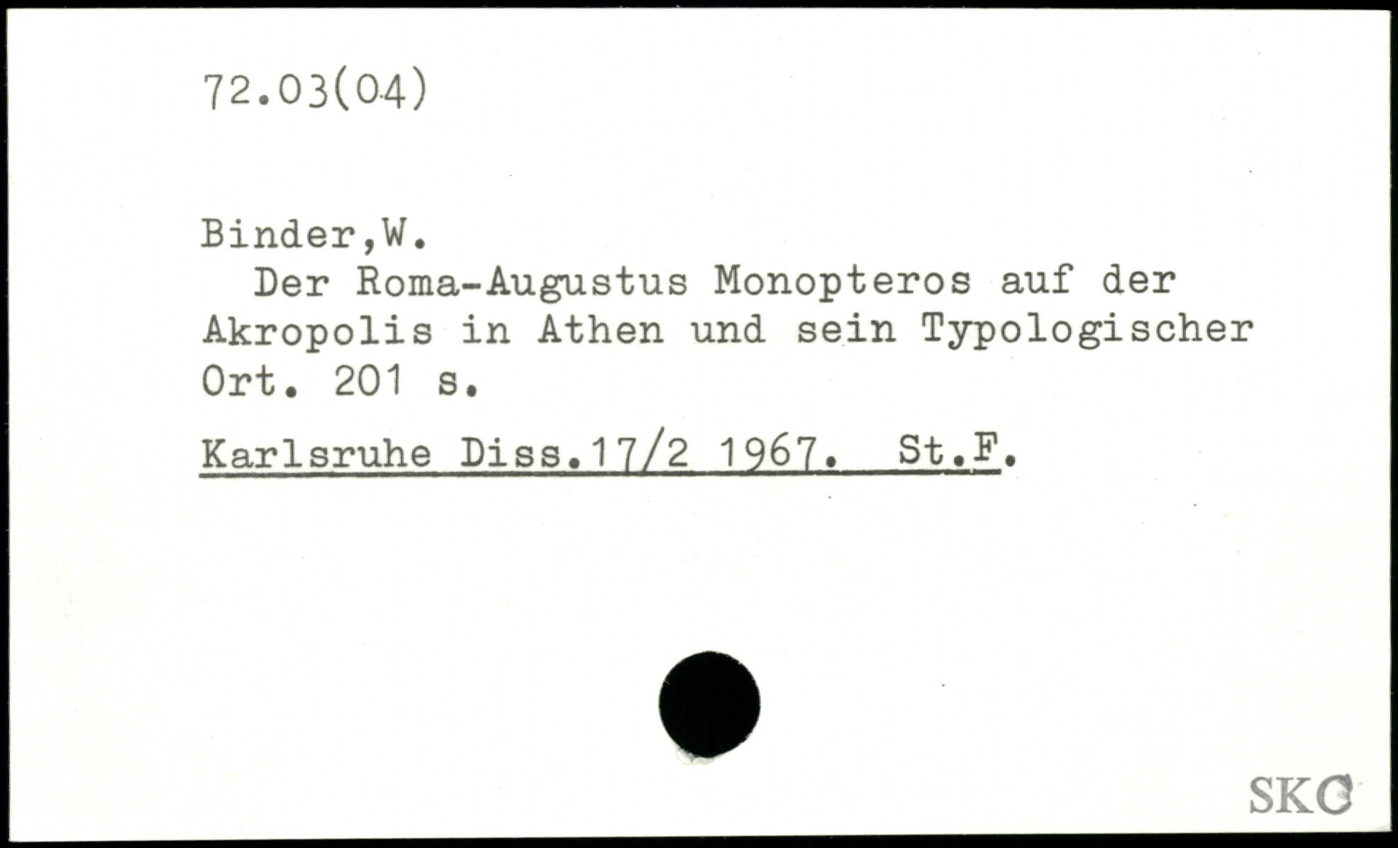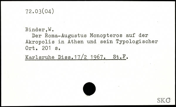 Der Roma-Augustus Monopteros auf der Akropolis in Athen und sein Typologischer Ort.