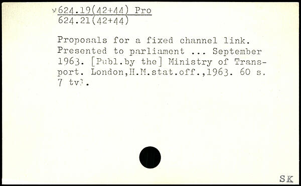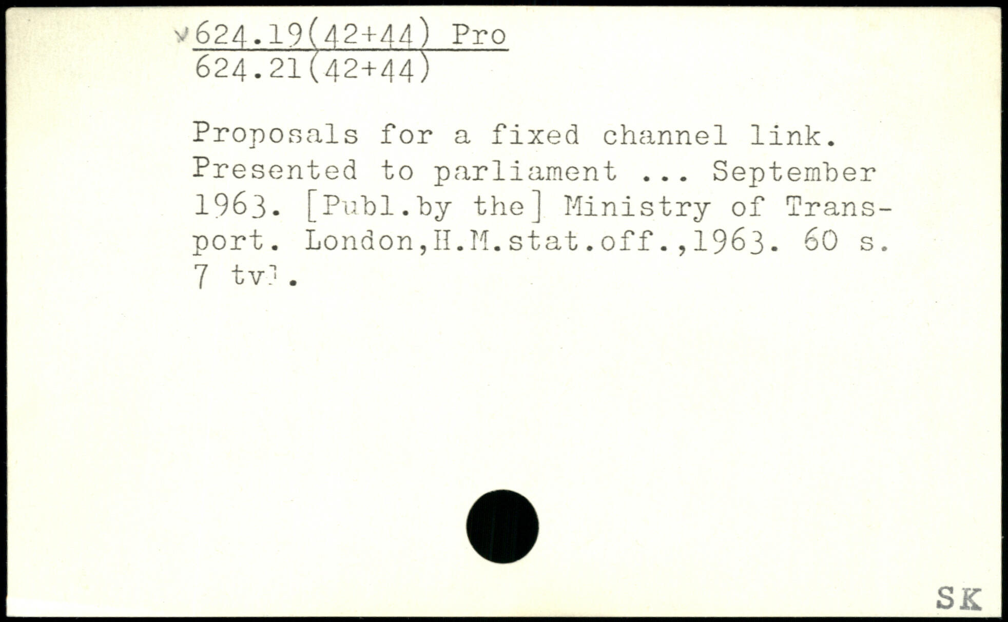 Proposals for a fixed channel link. Presented to parliament ... September 1963. [Prbl.by the] Ministry of Transport. London,II.M. stat. off., 1963.