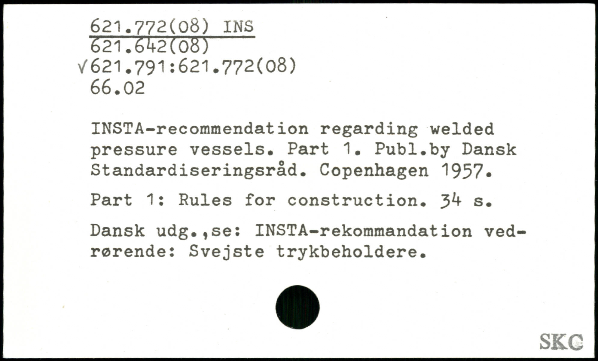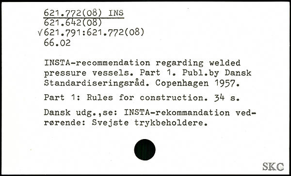 INSTA-recommendation regarding welded pressure vessels. Part 1.