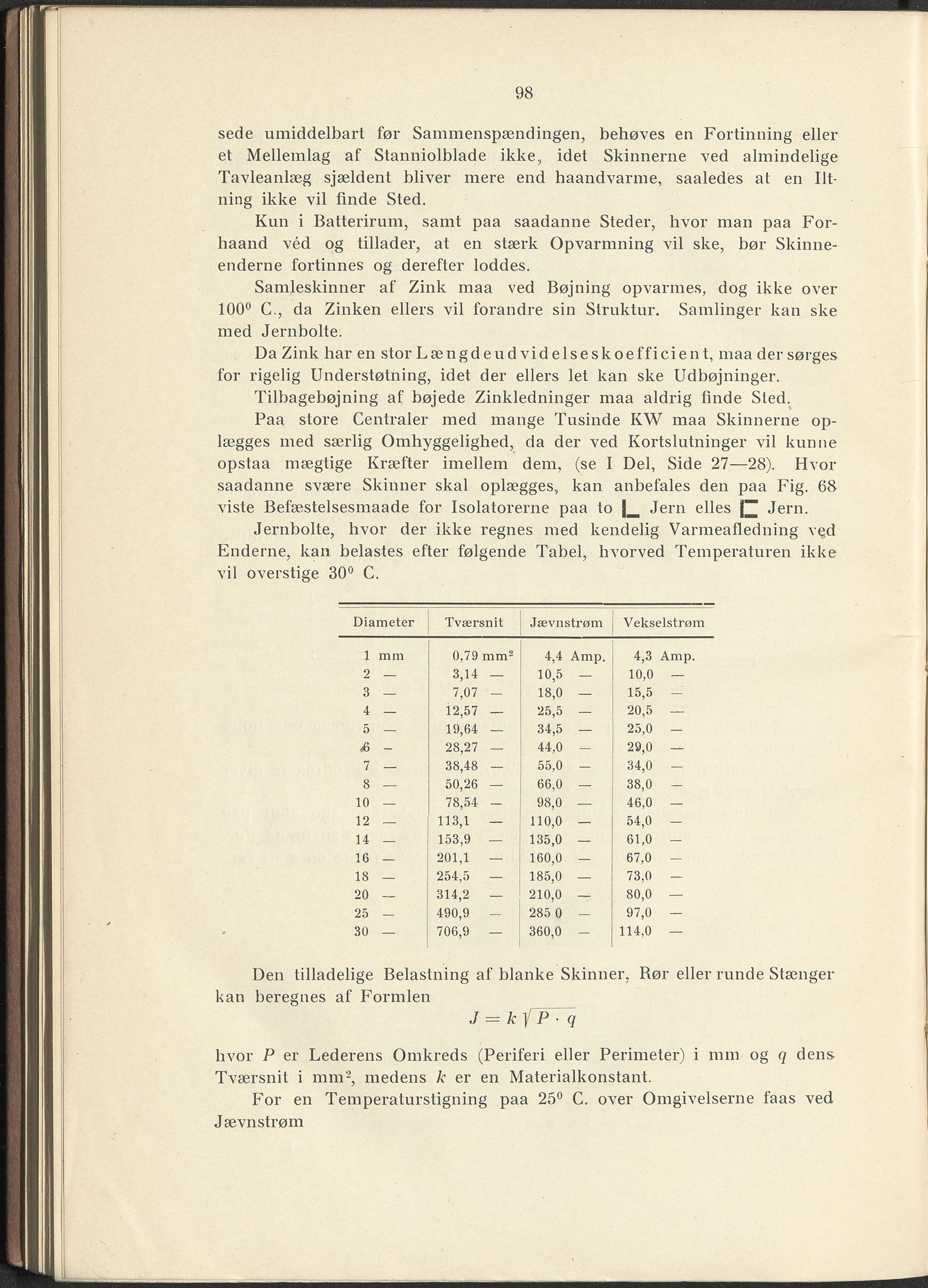 Tværsnit i mm2, medens k er en Materialkonstant.