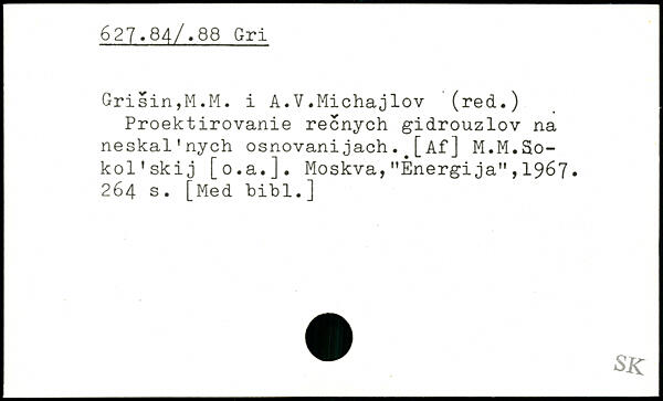 Proektirovanie recnych gidrouzlov na neskal’nych osnovanijach.^[Af] M.M.So-kol'skij [o.a.]. Moskva,”Energija",1967.