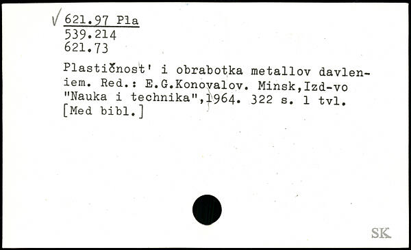 PlastiSnost' i obrabotka metallov davlen— iem. Red..! E. G.Konovalov. Minsk,Izd-vo "Nauka i technika",1964.
