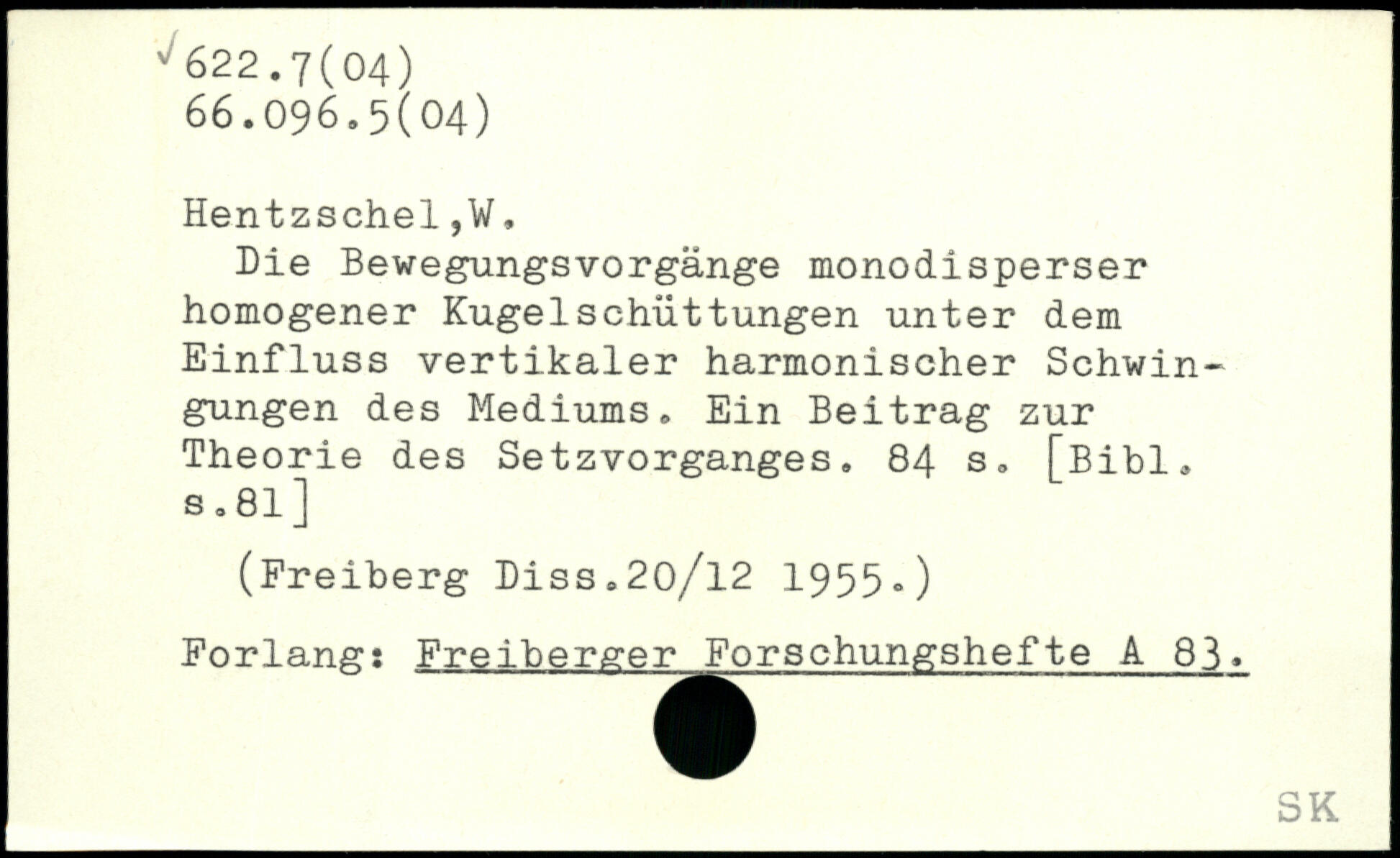 Die Bewegungsvorgänge monodisperser homogener Kugelschüttungen unter dem Einfluss vertikaler harmonischer Schwingungen des Mediums. Ein Beitrag zur Theorie des Setzvorganges.
