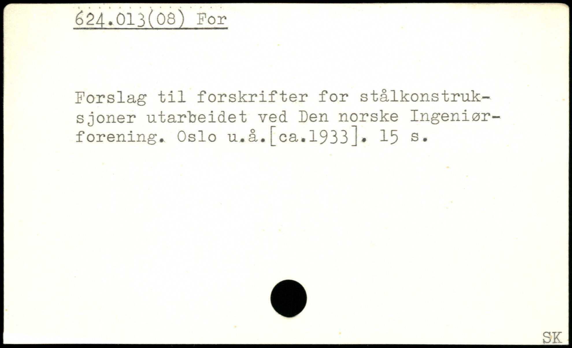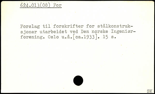 Forslag til forskrifter for stålkonstruk-s joner utarbeidet ved fen norske Ingeniørforening. Oslo u.å.[ca.1933].