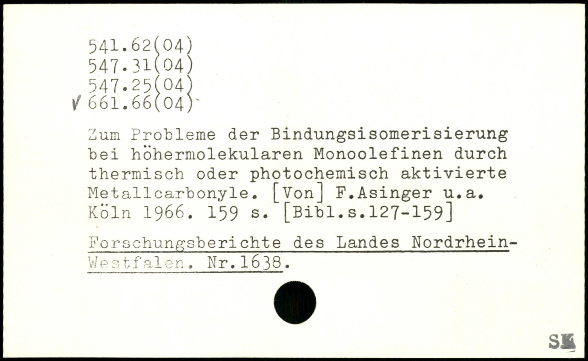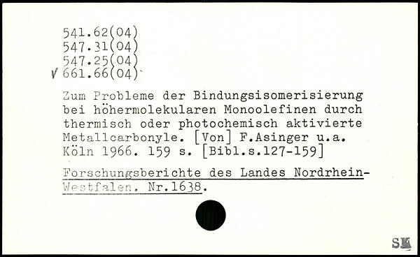 Zum Probleme der Bindungsisomerisierung bei höhermolekularen Monoolefinen durch thermisch oder photochemisch aktivierte Metallcarbonyle. [Von] F.Asinger u.a.
