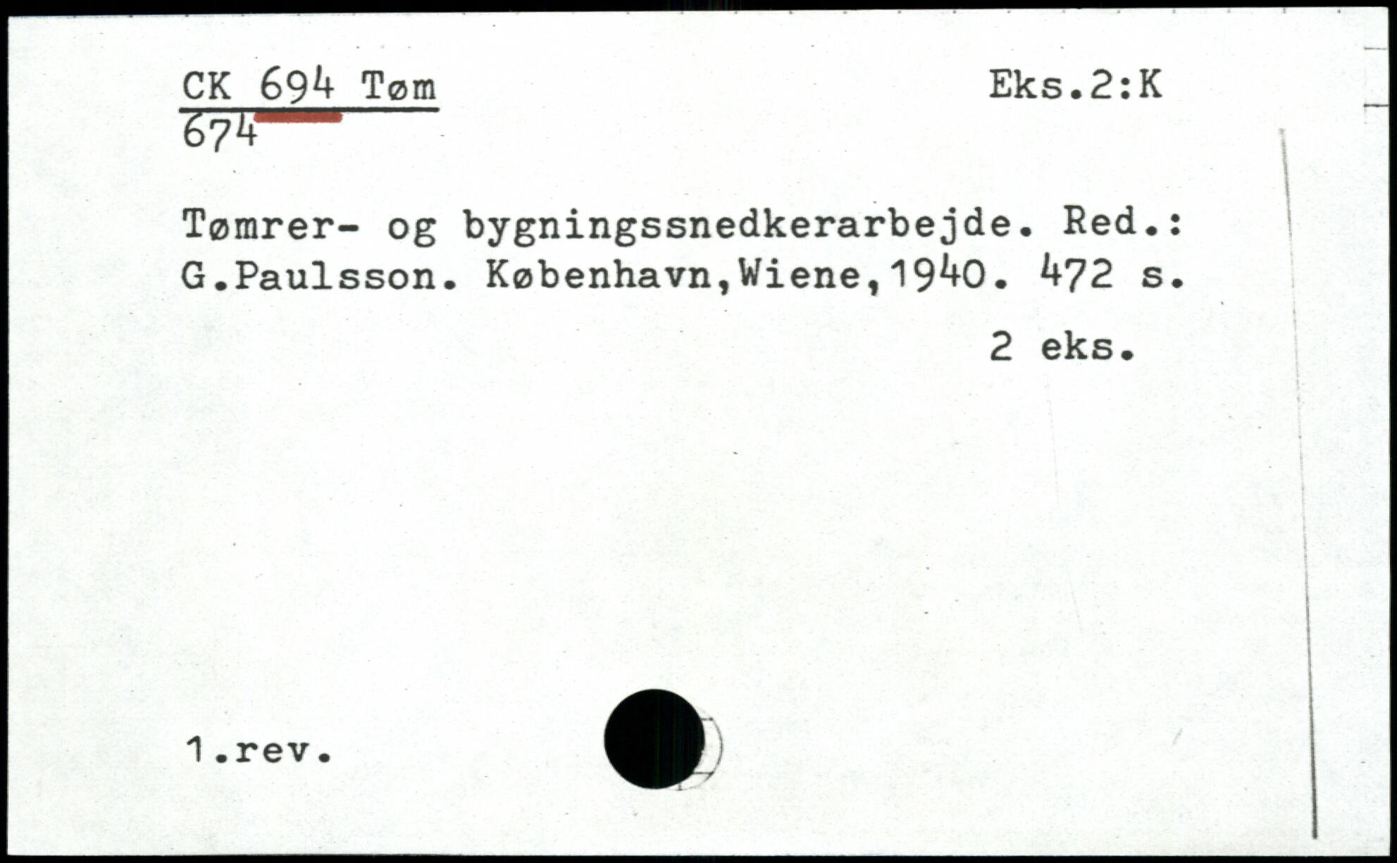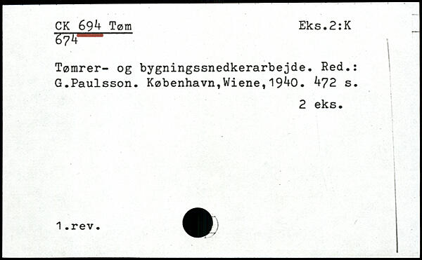 Tømrer- og bygningssnedkerarbejde. Red,: G.Paulsson. København,Wiene,19^0. ^