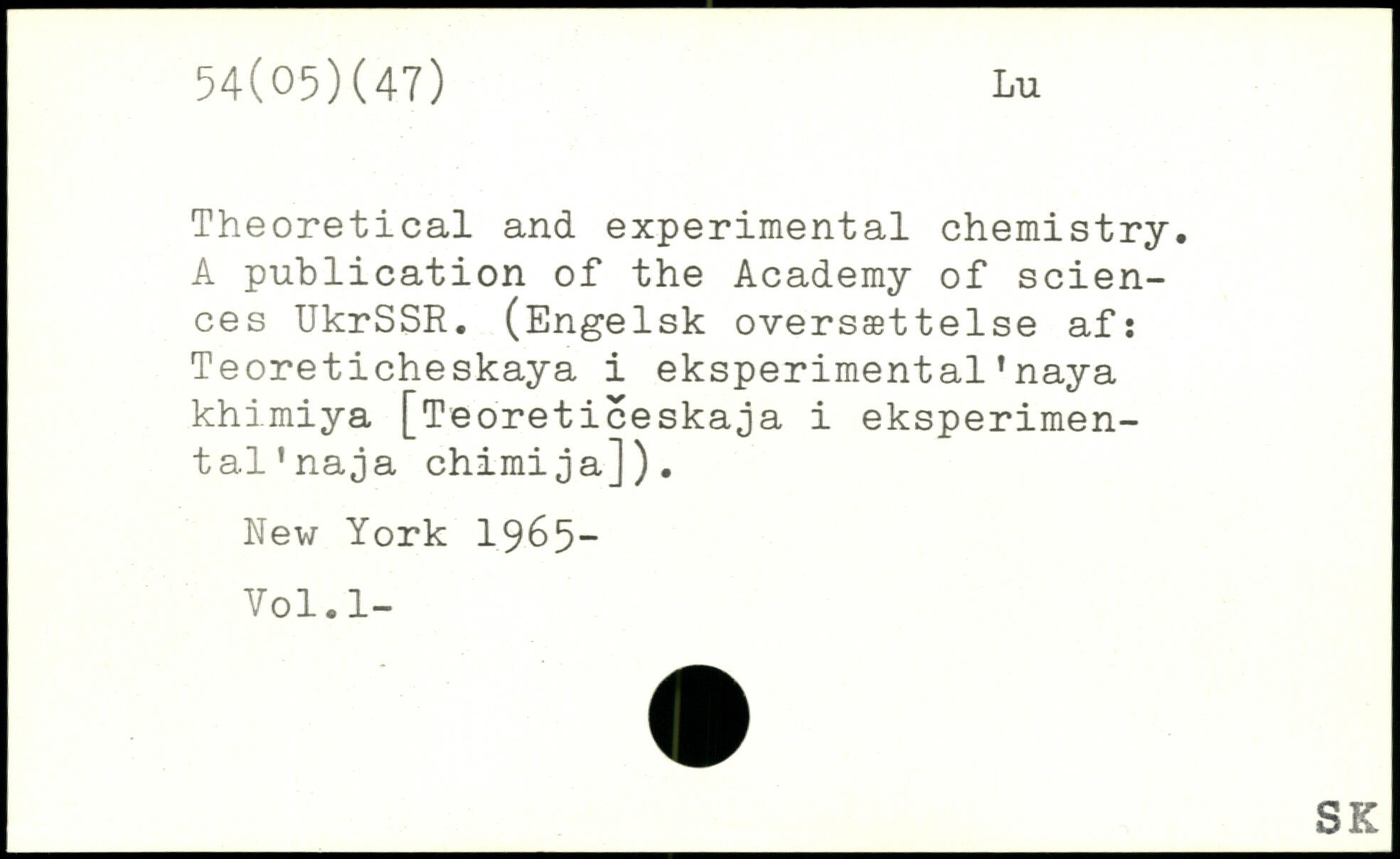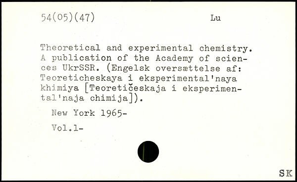 Theoretical and experimental chemistry. A publication of the Academy of sciences UkrSSR. (Engelsk oversættelse af: Teoreticheskaya i eksperimental’naya khimiya [Teoreticeskaja i eksperimen-tal'naja chimija]).