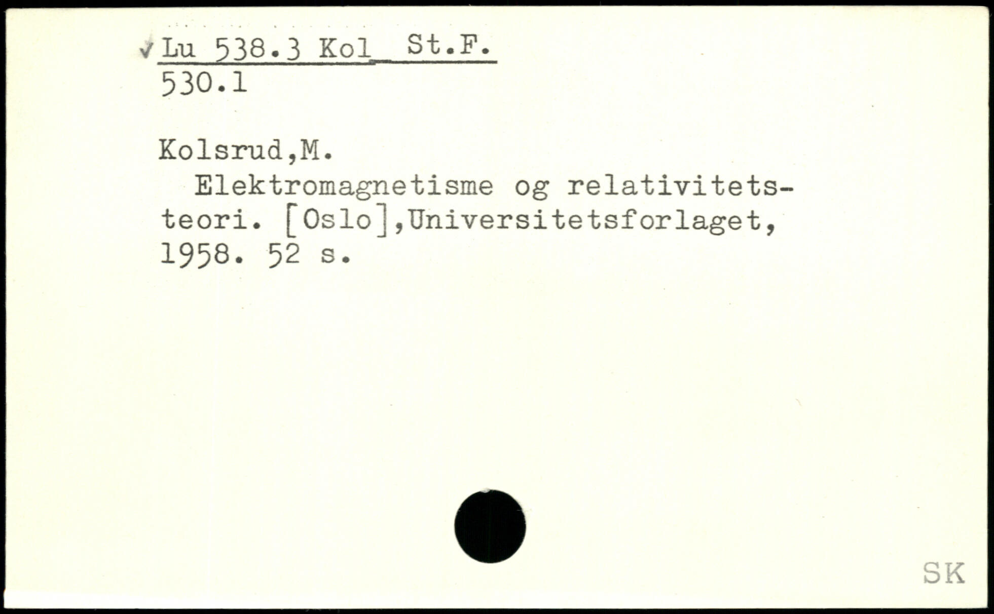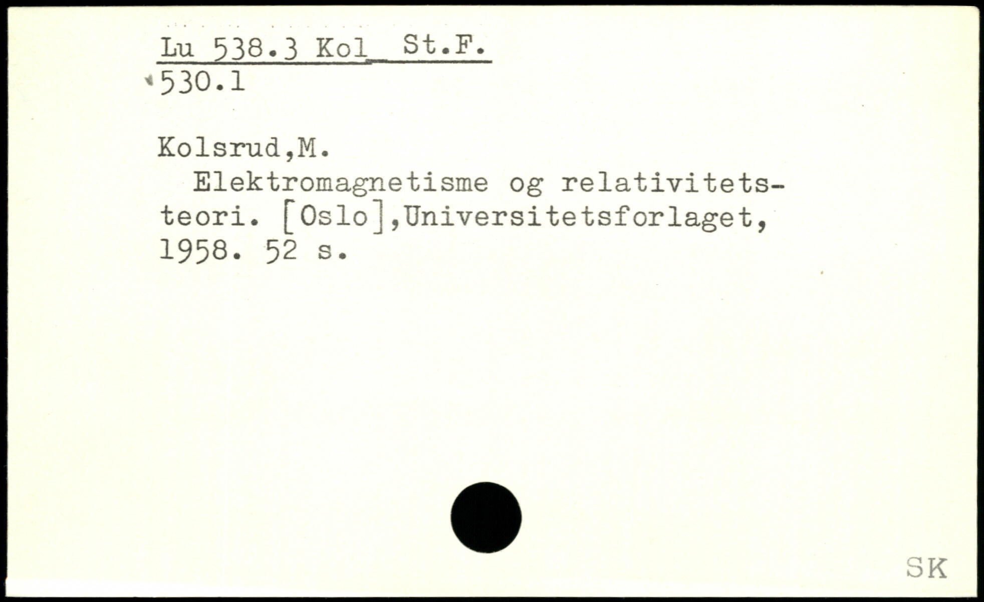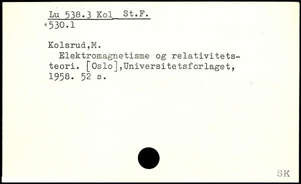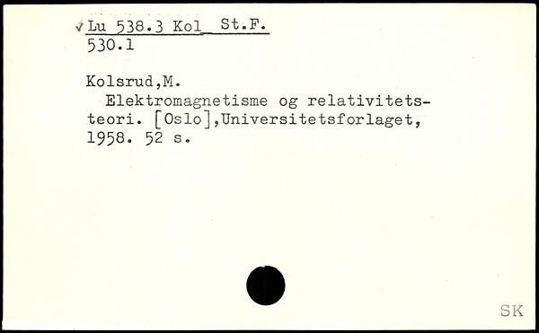 Elektromagnetisme og relativitetsteori. [Oslo],Universitetsforlaget, 1958.