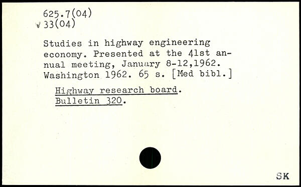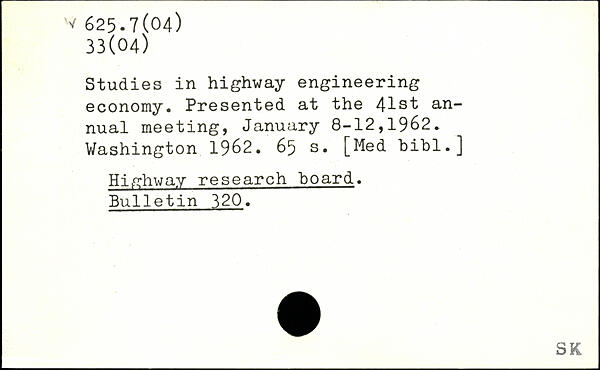 Studies in highway engineering economy. Presented at the 41s"t annual meeting, January 8-12,1962.