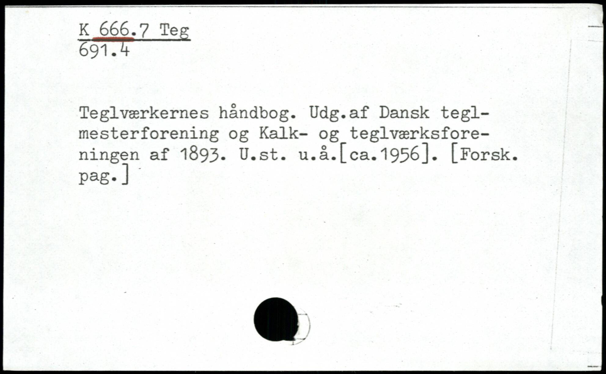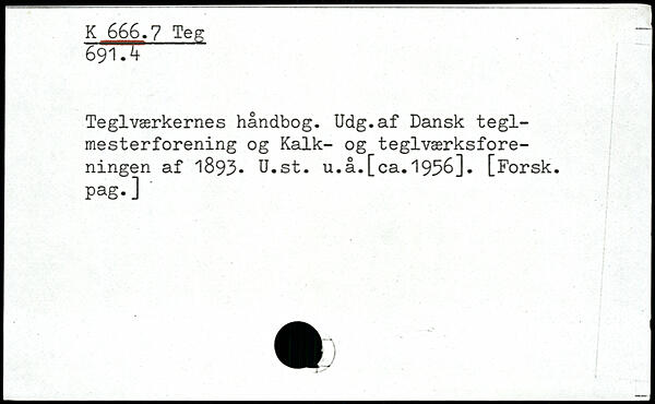 Teglværkernes håndbog. Udg.af Dansk tegl-mesterforening og Kalk- og teglværksforeningen af 1893. U.st. u.å.[ca.1956]. [Forsk. Pag-]