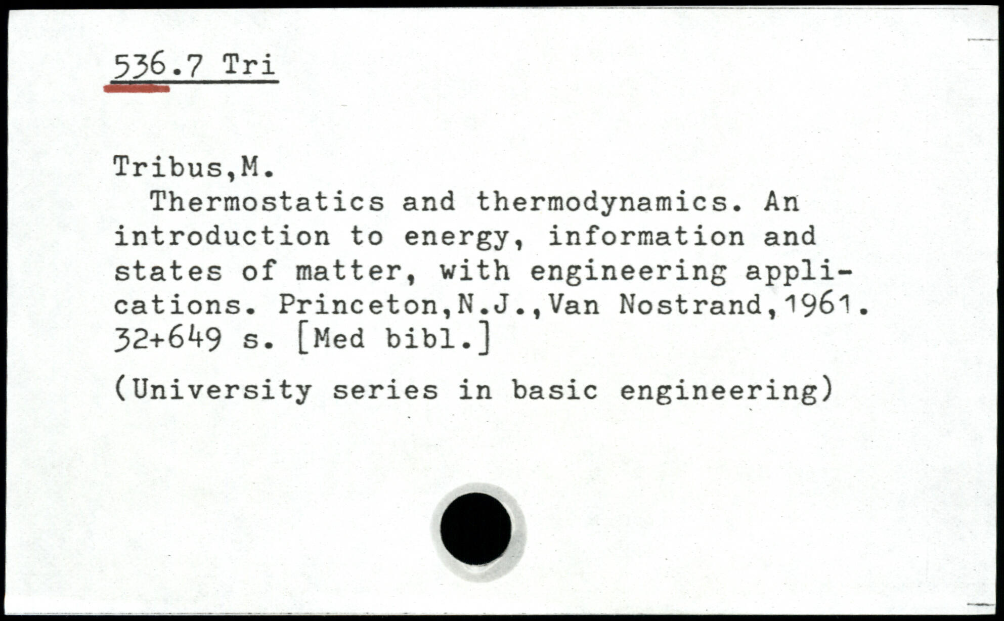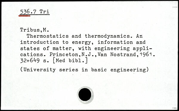 Thermostatics and thermodynamics. An introduction to energy, information and states of matter, with engineering applications.