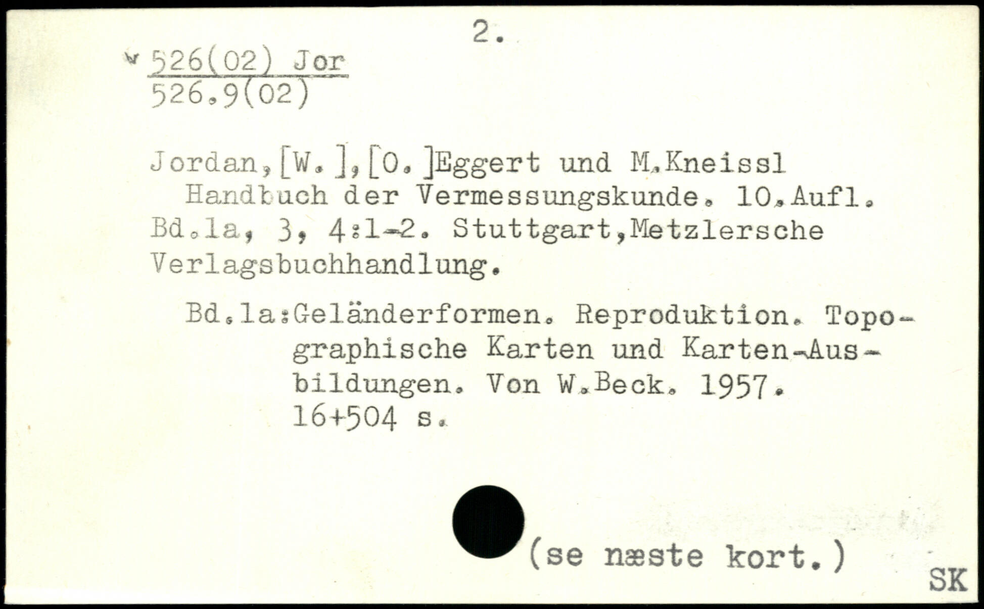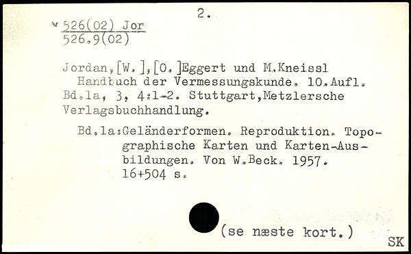 Jordan,[W,J,[O.jEggert und H.Kneissl Handtuch, der Vermessungskunde, lO.Aufl. Bd,la, 3> 4^1-2. Stuttgart,Metzlersche Verlagsbuchhandlung. Bd,lasGeländerformen. Reproduktion, Topographische Karten und Karten-Ausbildungen. Von W.Beck. 1957. I