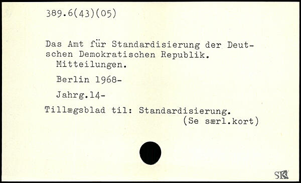 Das Amt für Standardisierung der Deutschen Demokratischen Republik. Mitteilungen.
