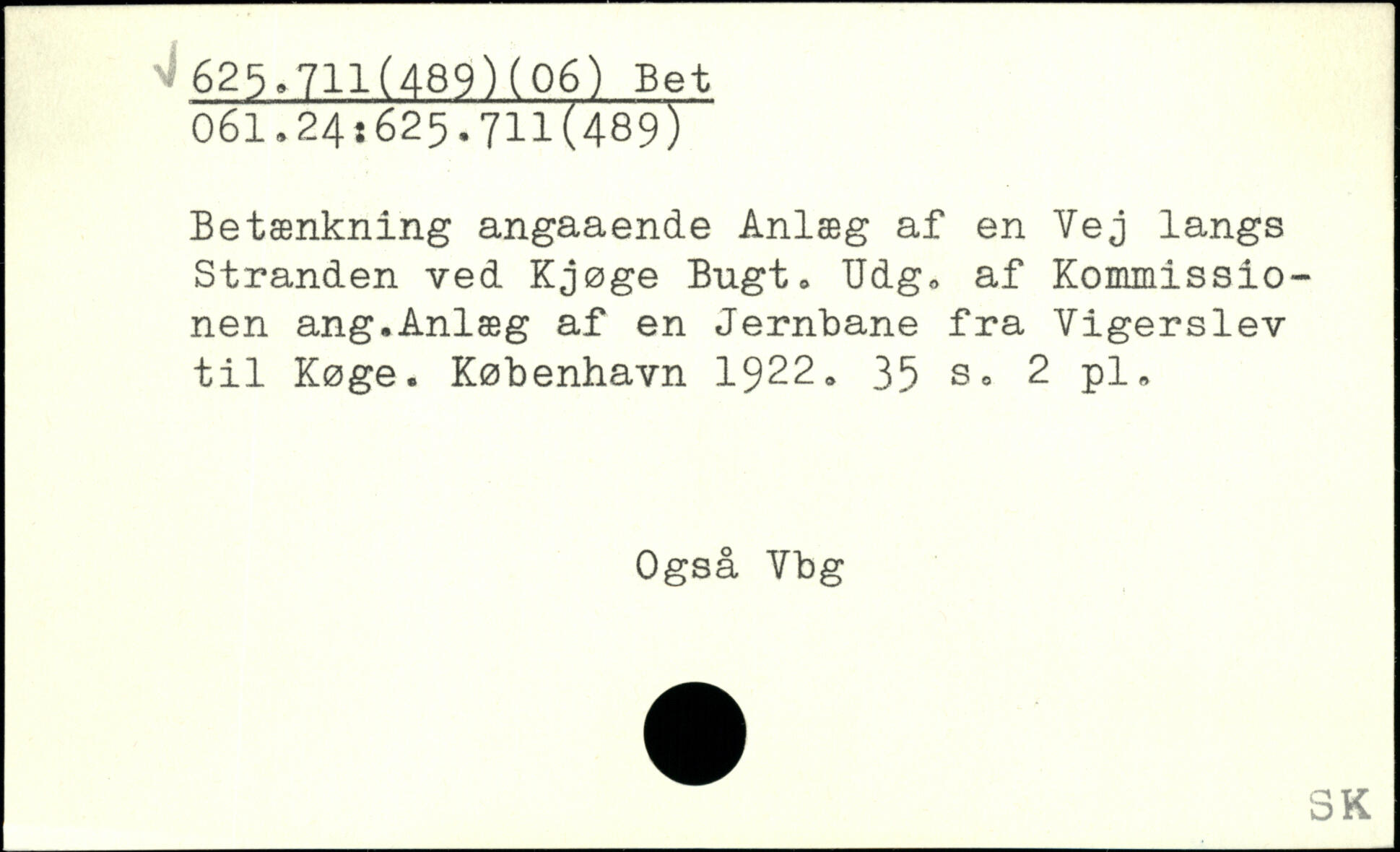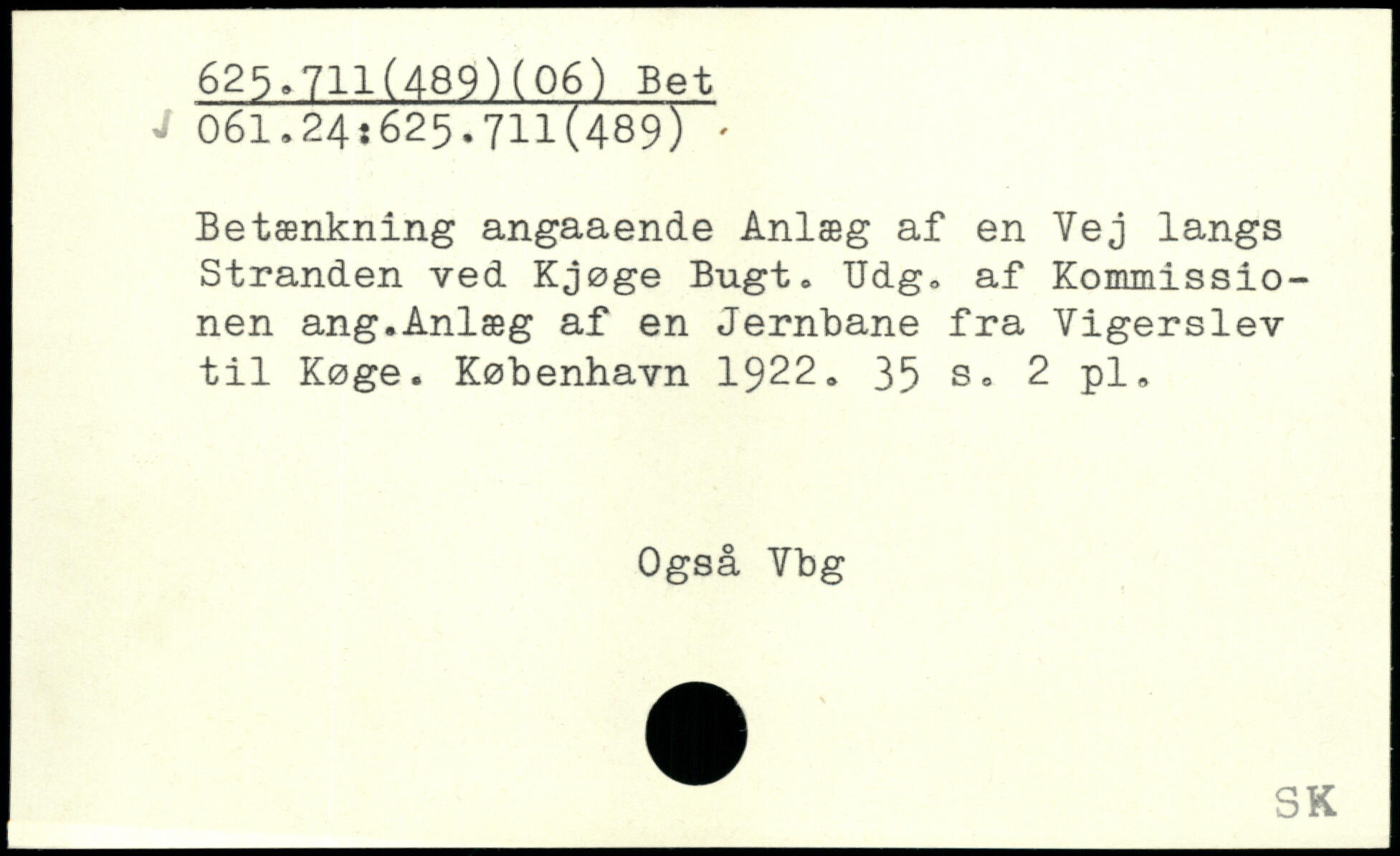 Betænkning angaaende Anlæg af en Vej langs Stranden ved Kjøge Bugt. Udg. af Kommissionen ang.Anlæg af en Jernbane fra Vigerslev til Køge.