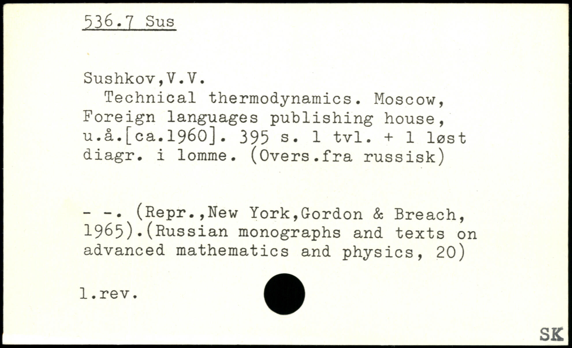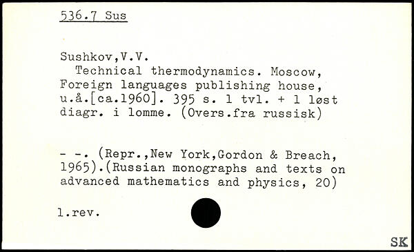 Technical thermodynamics. Moscow, Foreign languages publishing house, u.a.[ca.1960].