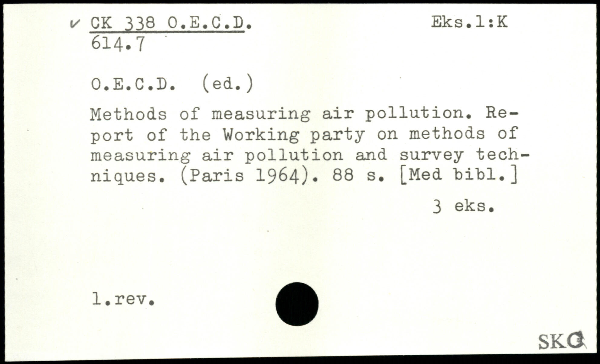 Methods of measuring air pollution. Report of the Working party on methods of measuring air pollution and survey techniques. (