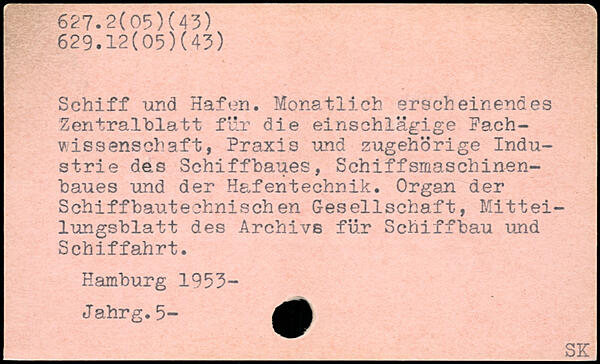 Schiff und Hafen. Monatlich erscheinendes Zentralblatt für die einschlägige Fachwissenschaft, Praxis und zugehörige Industrie des Schiffbaues, Schiffsmaschinenbaues und der Hafentechnik. Organ der Schiffbautechnisch en Gesellschaft, Mitteilungsblatt des Archivs für Schiffbau und Schiffahrt.