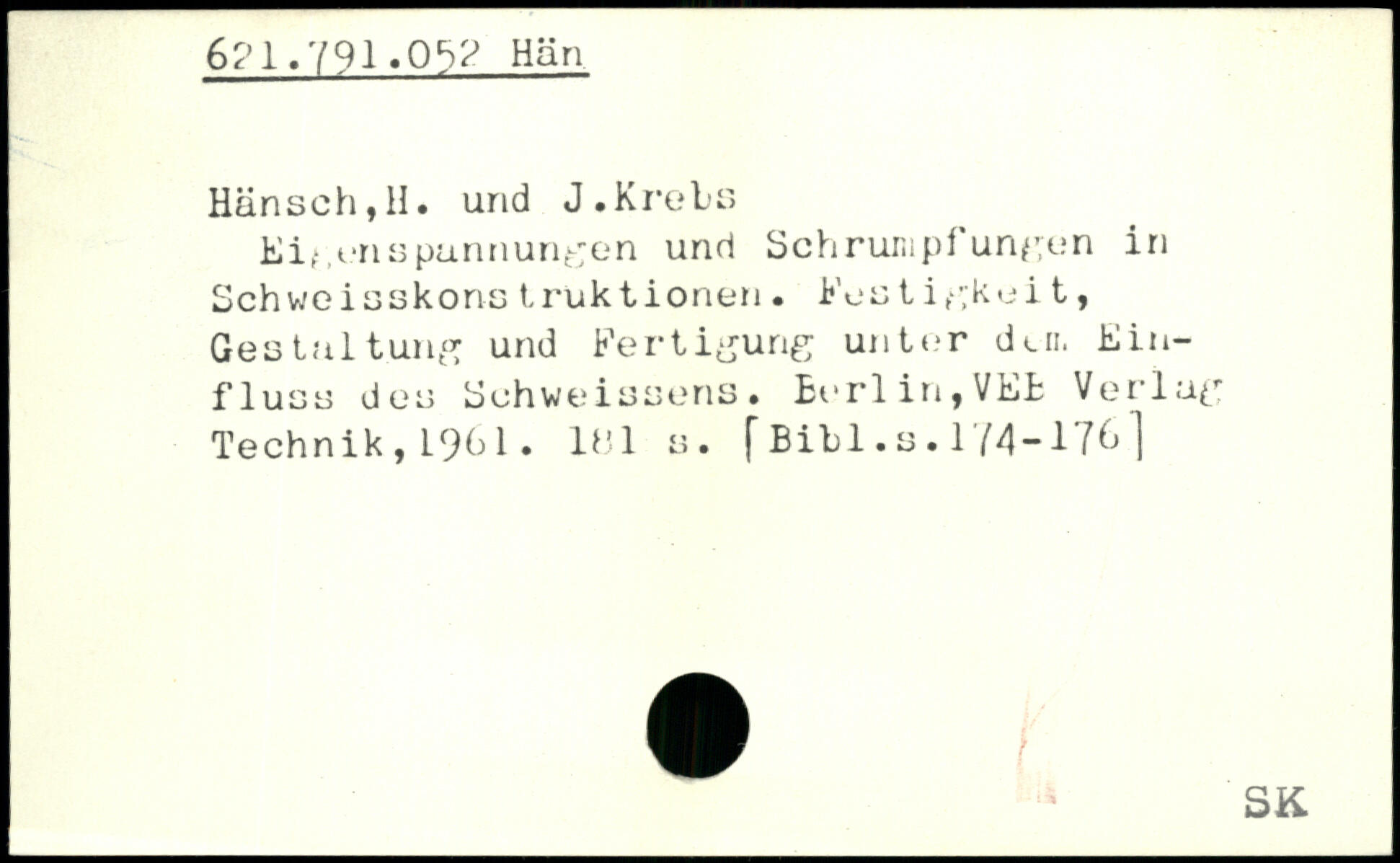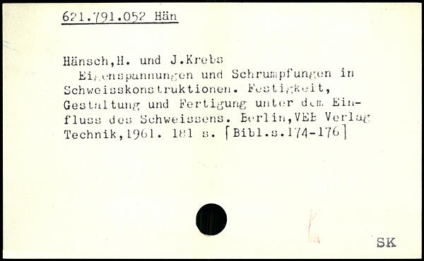 Eigenspunnungen und Schrumpfungen in Schweisskoris truktionen. Kost igkei t, Gestaltung und Fertigung unter dui. Einfluss des Sohweissens. £erlin,VEB Verlag Technik, 19b1. lhl s.