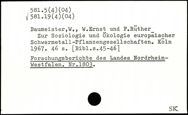 Baumeister,V., W.Ernst und F.RÜther Zur Soziologie und Ökologie europäischer Schwermetall-Pflanzengesellschaften.