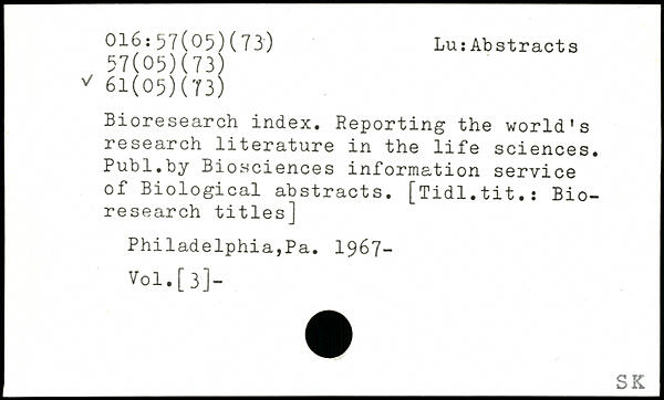 UDK: 016:57(05)(73), 57(05)(73), 61(05)(73)