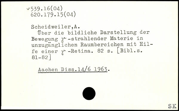 über die bildliche Darstellung der Bewegung ^-strahlender Materie in unzugänglichen Raumbereichen mit Hilfe einer y.. -Retina.