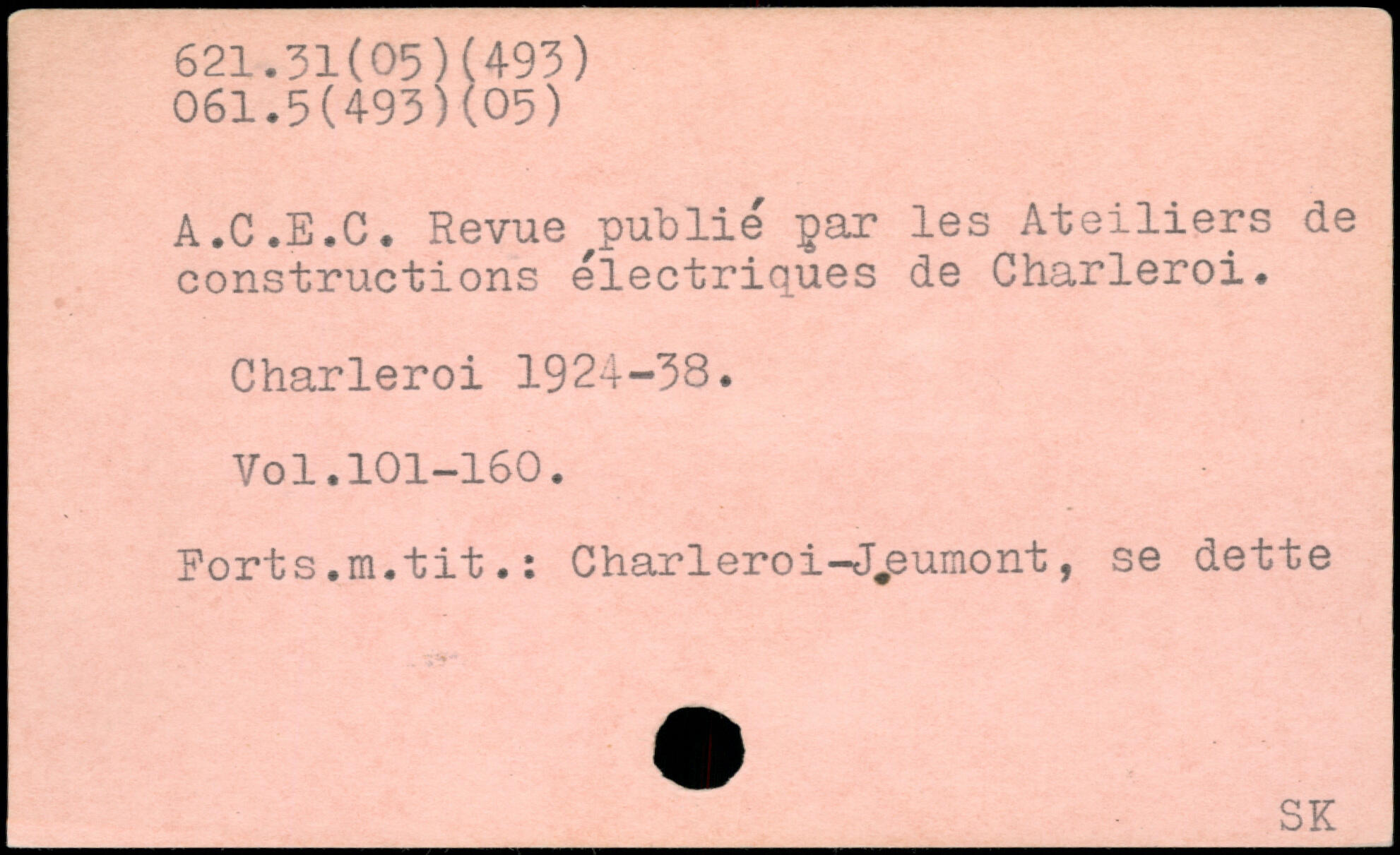 A.C.E.C. Revue ^publié par les Ateiliers de constructions électriques de Charleroi. Charleroi 1921-38.