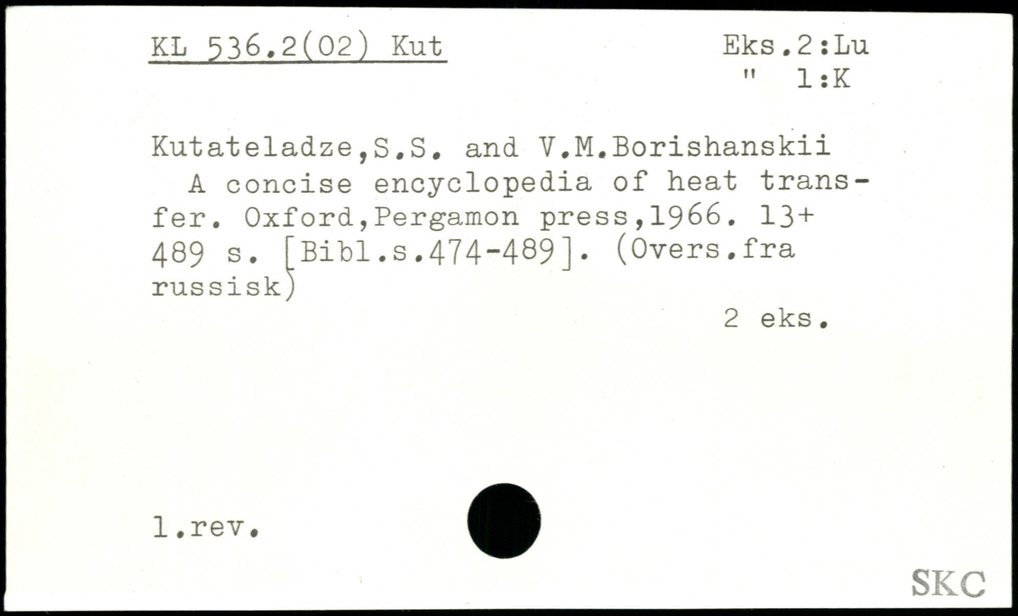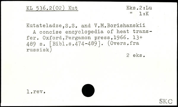 Kutateladze,S.S. and V.M.Borishanskii A concise encyclopedia of heat transfer.