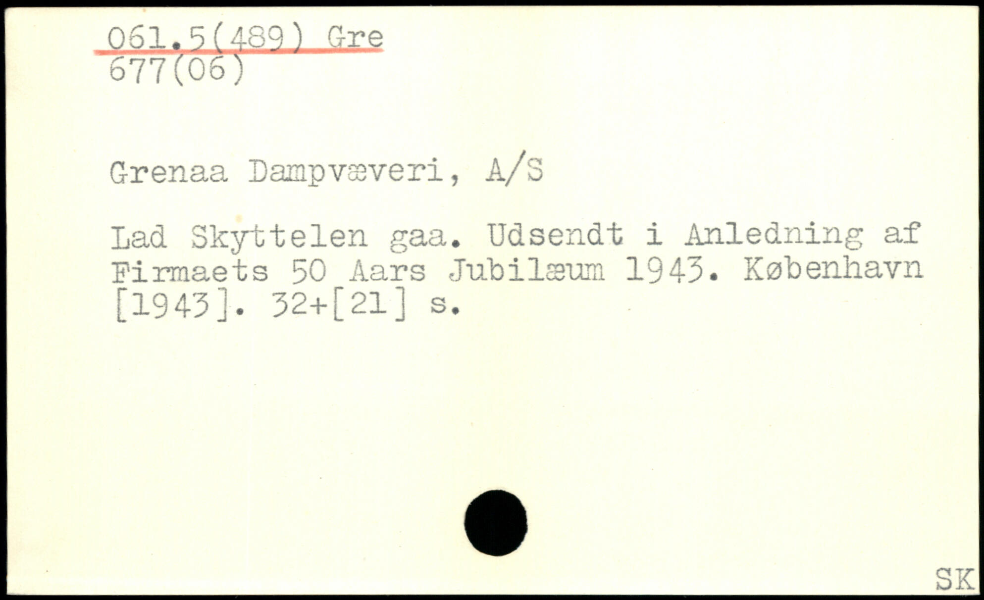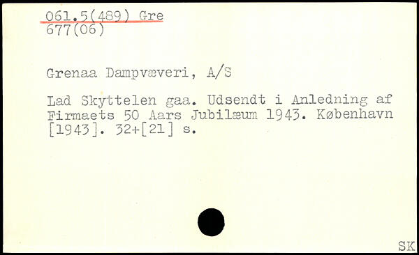Grenaa Dampvæveri, A/S Lad Skyttelen gaa. Udsendt i Anledning af Firmaets 50 Aars Jubilæum 1943.