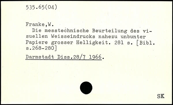 Die messtechnische Beurteilung des visuellen Weisseindrucks nahezu unbunter Papiere grosser Helligkeit.