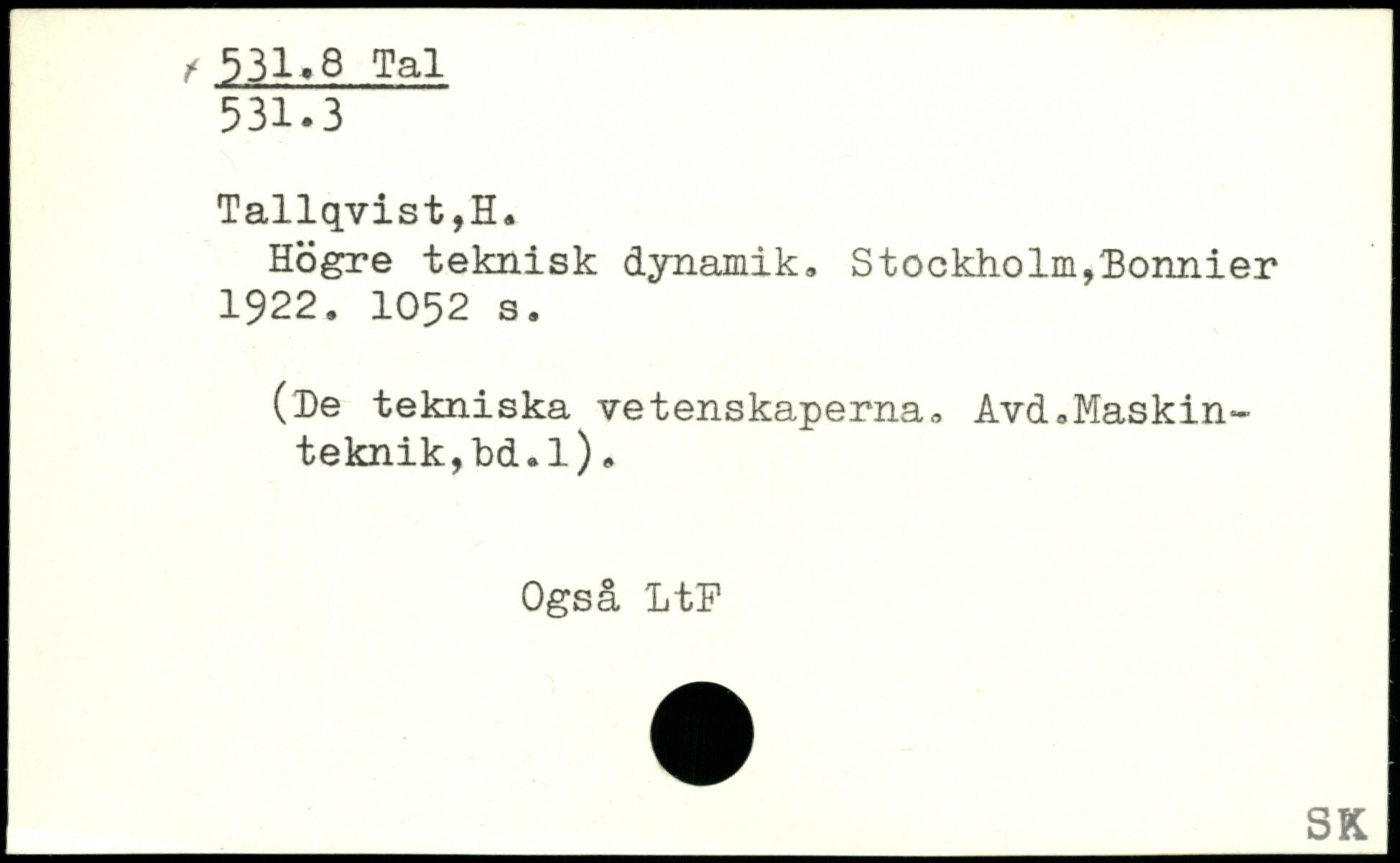 Högre teknisk dynamik, Stockholm,Bonnier 1922.