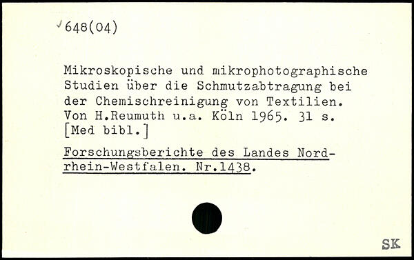 Mikroskopische und mikrophotographische Studien über die Schinutzabtragung bei der Chemischreinigung von Textilien. Von H.Reumuth u.a.
